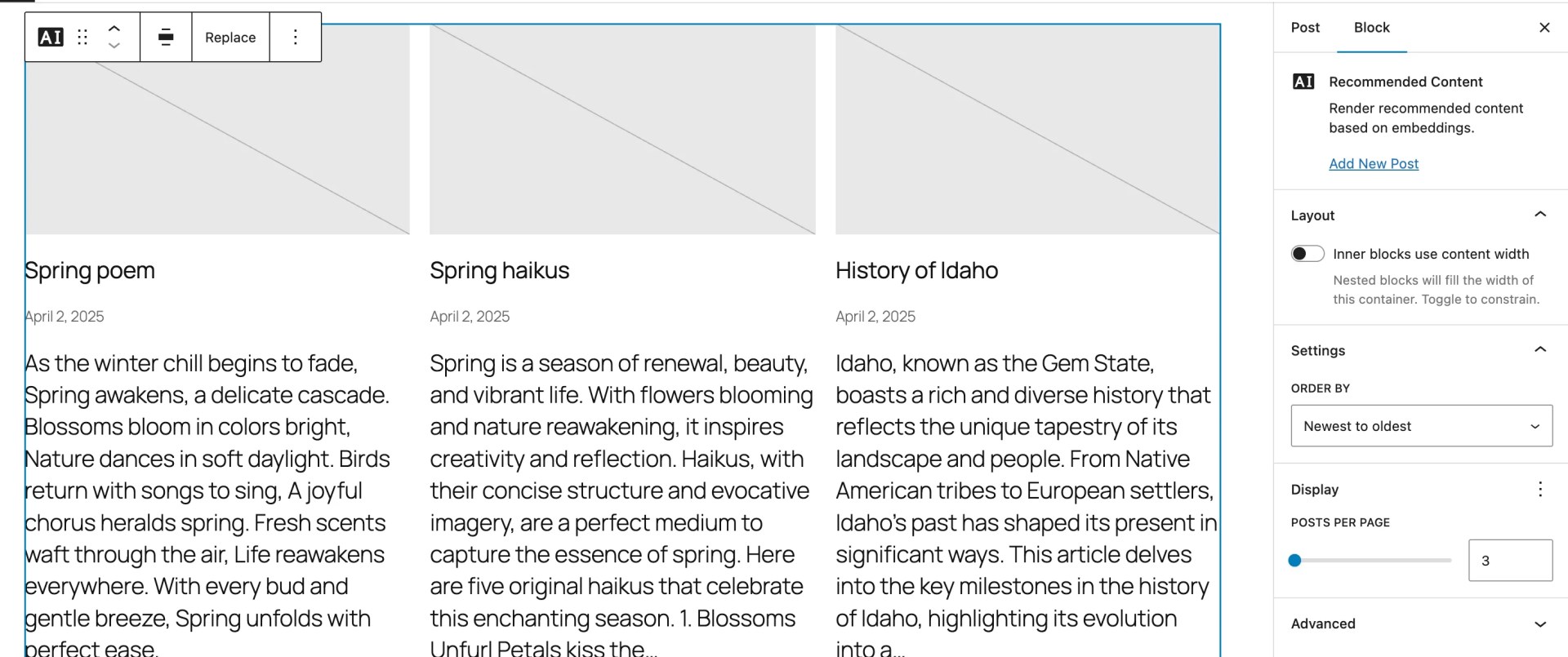 The result is a more helpful WordPress workflow. Editors get smarter suggestions when building pages, and publishers can improve discovery and internal linking without adding ongoing operational overhead.